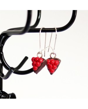 Envie d'affirmer votre personnalité et votre gourmandise? Si oui, ne passez pas à côté de ces boucles d'oreilles gourmandes représentant des parts de gâteau au chocolat et aux cerises. Réalisées à la main en pâte polymère, elles mesurent 1 cm de longueur pour 0,9 cm de largeur. La longueur totale de ces boucles d'oreilles est de 2,5 cm.