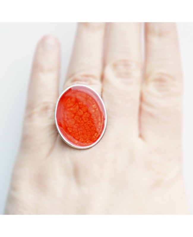 Meilleures ventes sur notre site internet, nous continuons de développer notre gamme de bagues en peinture et résine afin de vous proposer de nouvelles couleurs et de nouvelles formes. Les effets de la peinture étant aléatoire, chaque bague est unique et inimitable. Cette bague carrée et rouge ne déroge pas à la règle et doit son originalité aux reflets irisés et nacrés de la peinture. Avec ses écailles, elle révèle des effets de profondeur à la lumière. Une fiche couche de résine permet de finaliser et de protéger ce bijou fantaisie. Enfin, le support argenté est réglable. Vous pourrez donc modifier la taille de cette bague fantaisie très facilement.