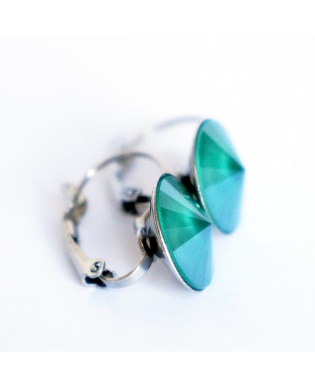Avec un diamètre de 13 mm, ces boucles d'oreilles sont très facile à porter. Pendantes, elles iront aussi bien aux brunes aux blondes qu'aux rousses et elles révéleront leur éclat à la lumière. En effet, les cabochons en cristal de Swarovski (collection Printemps / été 2017) révèlent l'intensité de leur couleur à la lumière du jour.