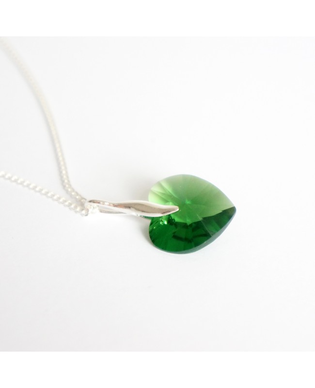 Si vous êtes à la recherche d'un bijou discret et original, ce pendentif en forme de coeur vous plaira. En cristal de Swarovski, il est transparent avec des reflets verts. Il est fixé sur une bêlière et est accompagné d'une chaîne ras-du-cou en argent. Le coeur a une largeur de 1,5 cm.