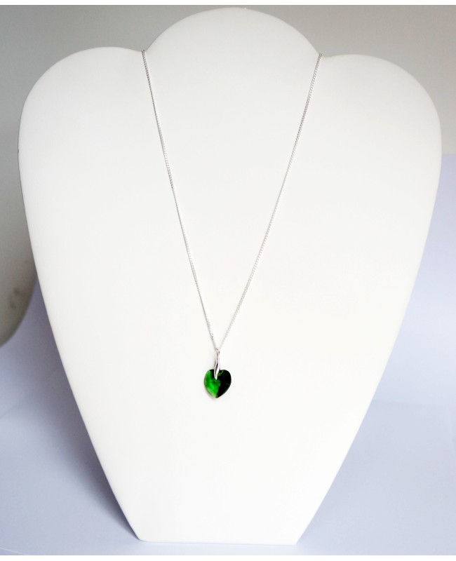 Accompagné de sa chaîne en argent, ce pendentif en forme de petit coeur est le cadeau idéal. Pourquoi êtes-vous sûr(e) de faire plaisir? Tout simplement car il est simple, original et très facile à porter. Un de ses atouts est sa petite taille. En effet, avec une largeur de 1,5 cm, il est discret. En cristal de Swarovski, il renvoie la lumière comme nul autre bijou et révèle des reflets verts. Enfin, il a été monté à la main, dans notre atelier, et nous apportons le plus grand soin à la conception de nos bijoux fantaisie. Fabriqué en Belgique.