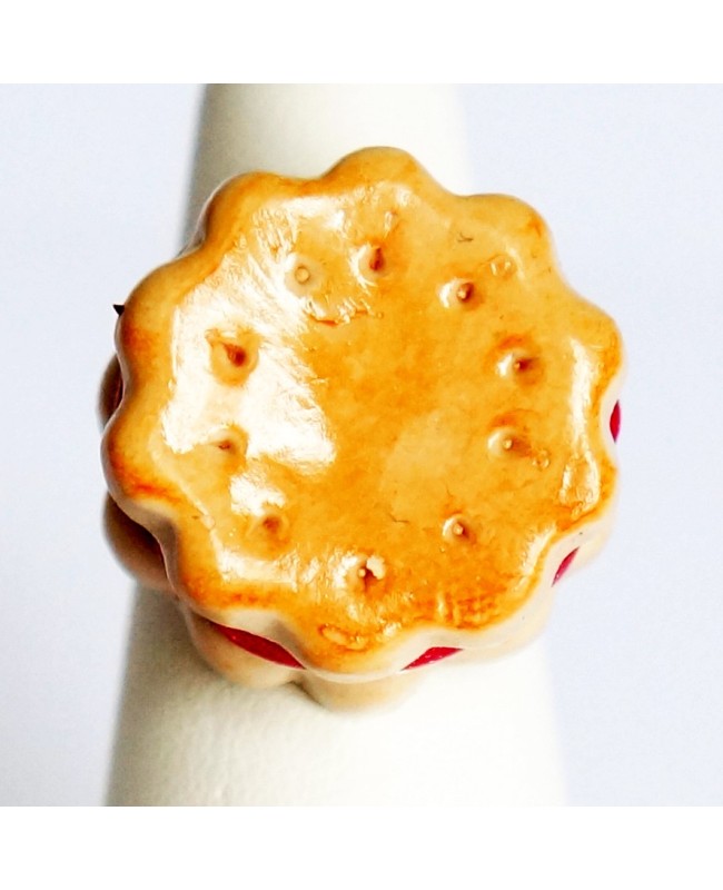Si vous souhaitez faire un cadeau à une petite fille, optez pour une bague originale entièrement conçue à la main. Sur un support réglable, nous avons fixé un gâteau. Celuis-ci a été entièrement réalisé à la main dans notre atelier. Le résultat est ainsi simple et original. Bref, c'est toujours l'heure du goûter avec cette bague en forme de gâteau fourré à la fraise.