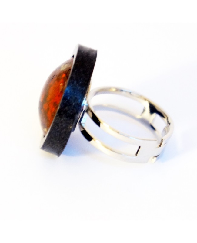 Le diamètre de cette bague est de 2,5 cm et le cabochon a été fixé sur un support ajustable argenté.