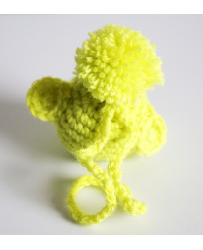 De couleur jaune "néon" ou "fluo", ce petit oiseau a été réalisé au crochet. Grâce à son attache en laine, il peut facilement être accroché à un sac, une porte, etc. Réalisé à la main par nos soins, il attend avec impatience de rejoindre une nouvelle famille qui saura prendre soin de lui!