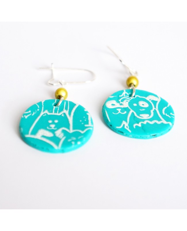 Adepte de nos amis les bêtes, c'est le moment de vous faire remarquer avec ces boucles d'oreilles turquoises avec des motifs de chiens et de chats. 4,8 cm de longueur pour un résultat qui amusera votre entourage.