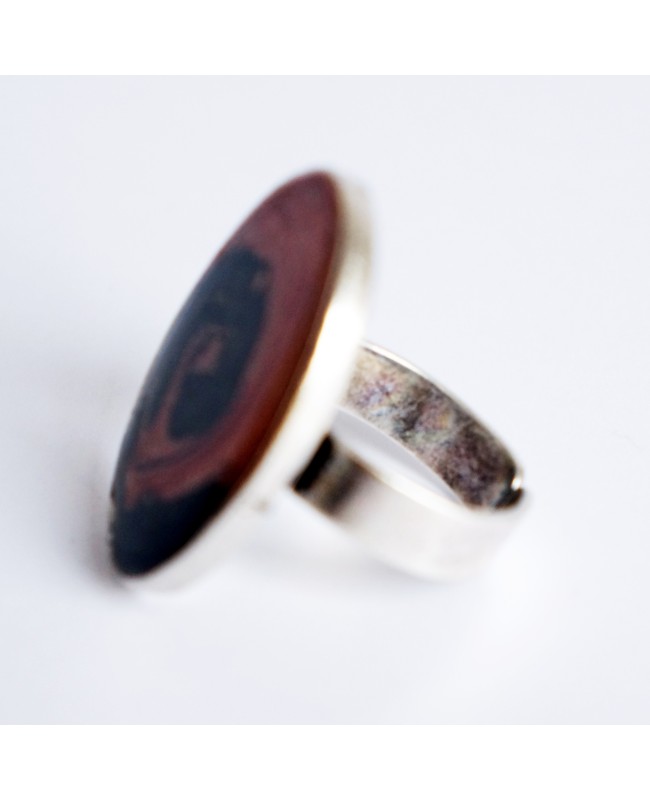 Cette bague ovale est ajustable. La partie supérieure de cette bague mesure 25 mm de longueur pour 18 mm de largeur.