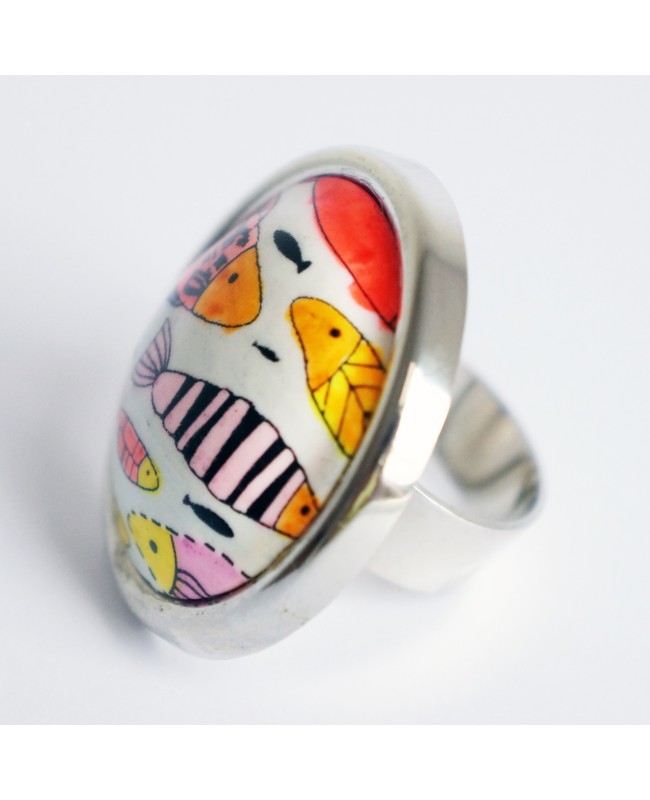 Bague poissons multicolores