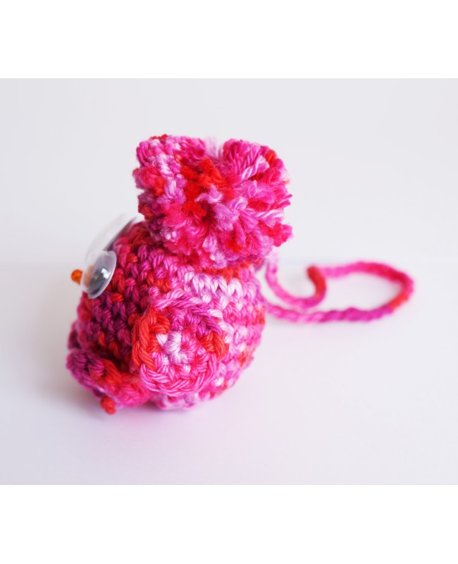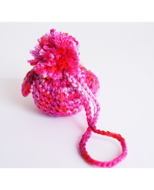 Ce petit piou-piou rose a été réalisé à partir de laine de qualité. Il a été fabriqué à la main et au crochet. Etant réalisé artisanalement, seuls quelques exemplaires de ce bijou de sac sont disponibles. Vous pouvez également le retrouver dans d'autres couleurs : jaune, vert ou bleu!