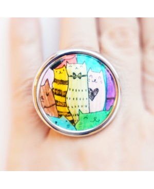 Pour un total look chats multicolores, ne passez pas à côté de la bague assortie (existe en 2 motifs différents).
