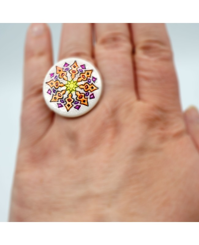 Bague mandala orange, jaune, violette et rose Bagues gourmandes et en pâte polymère