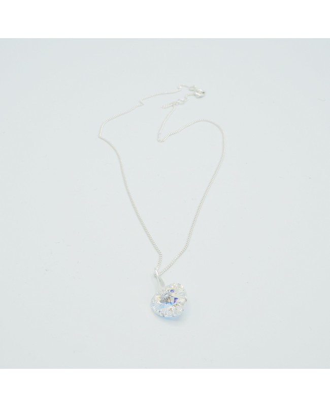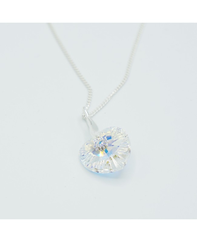Si vous êtes à la recherche d'un bijou discret et original, ce pendentif en forme de coeur vous plaira. En cristal de Swarovski, il est transparent avec des reflets multicolores à la lumière du jour. Il est fixé avec une bélière et est accompagné d'une chaîne ras-le-cou en argent. Le coeur a une largeur de 1,5 cm.