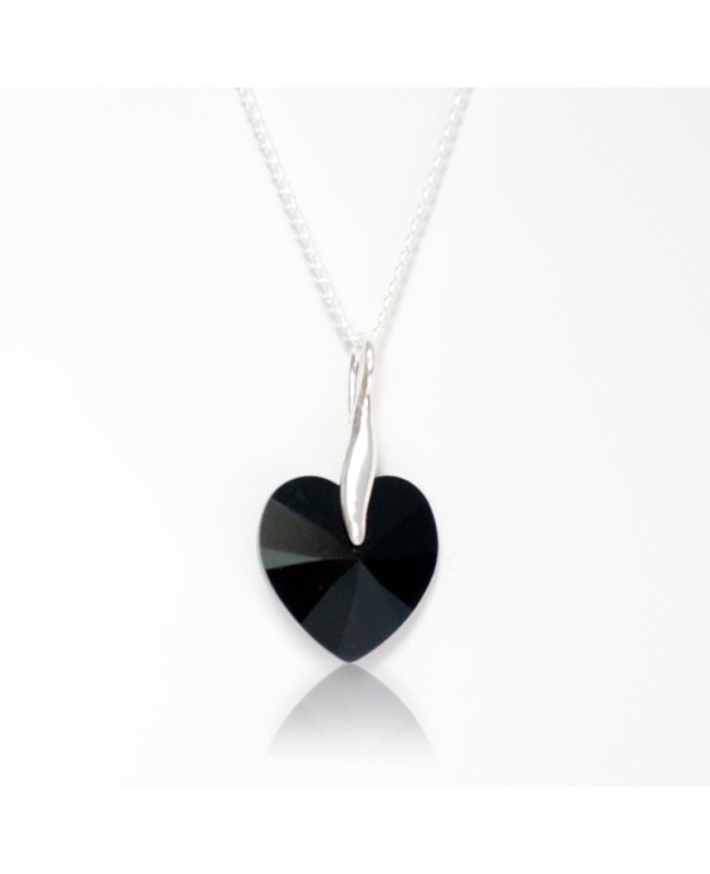 Cette parure en argent et cristal plaira à celles qui aiment assortir leurs bijoux d'une manière simple et élégante. En cristal noir, cette parure se compose d'un collier cœur en cristal de Swarovski et de boucles d'oreilles. Les éléments en cristal sont opaques mais leurs facettes renvoient la lumière pour apporter de l'éclat et de la luminosité à l'ensemble. Vous bénéficiez d'une réduction de 10% si vous achetez ces bijoux ensembles. Cependant, ils peuvent également être achetés séparément.