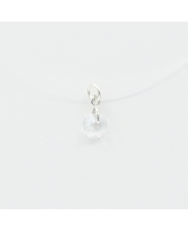 Si vous aimez les petits bijoux classes et discrets, vous adorerez ce petit pendentif transparent en cristal de Swarovski. De forme ronde, il se verra à peine grâce à sa petite taille de 6 mm de diamètre et il est accompagné d'un câble en nylon transparent.