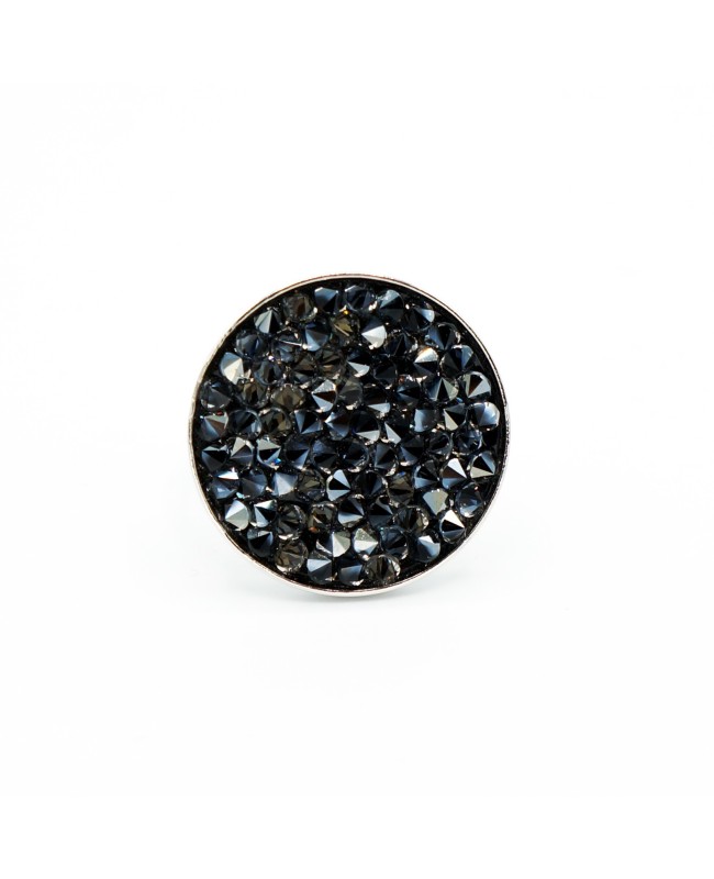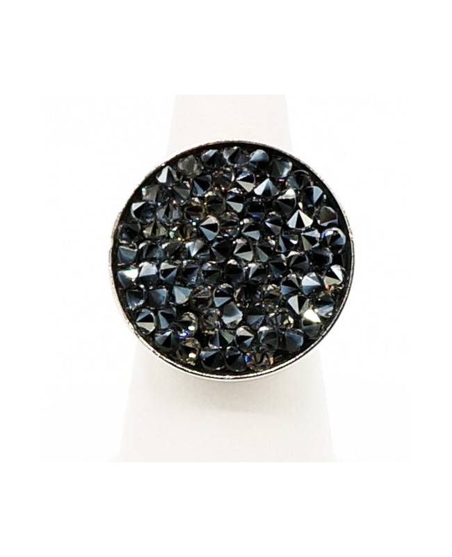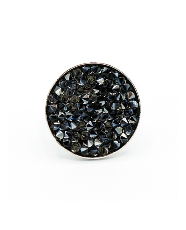 Originalité et classe sont les maîtres mots pour cette bague ajustable réalisée avec des cristaux autrichiens noirs. D'un diamètre de 25 mm, vous aimerez la sobriété des couleurs et l'éclat des cristaux. Les petites toupies noires révèlent des reflets noirs-gris à la lumière.