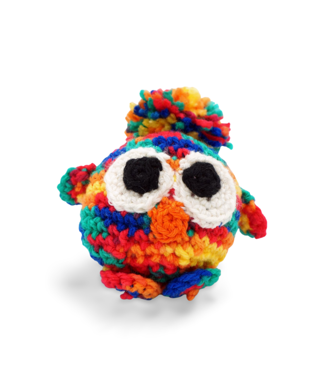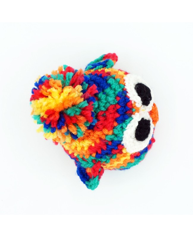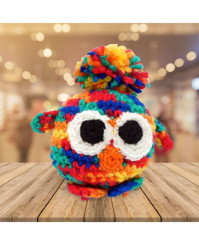 Le Nibou multicolore réalisé au crochet est une création artisanale sympathique et unique en son genre. Mesurant 9 cm de hauteur, ce petit oiseau coloré peut devenir le compagnon idéal ou tout simplement s'afficher en objet de décoration.
