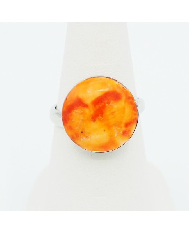 Le cabochon est monté sur un support de bague en métal argenté avec un anneau ajustable, garantissant un ajustement idéal. Unique en son genre, cette bague orange est disponible uniquement sur notre site, avec un diamètre de 1,5 cm pour la partie supérieure, et des versions plus grandes sont également proposées.