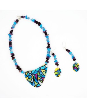 Le collier, d’une longueur de 55 cm, et les boucles d’oreilles, mesurant 7,3 cm, se complètent harmonieusement, offrant un look doux et sophistiqué.