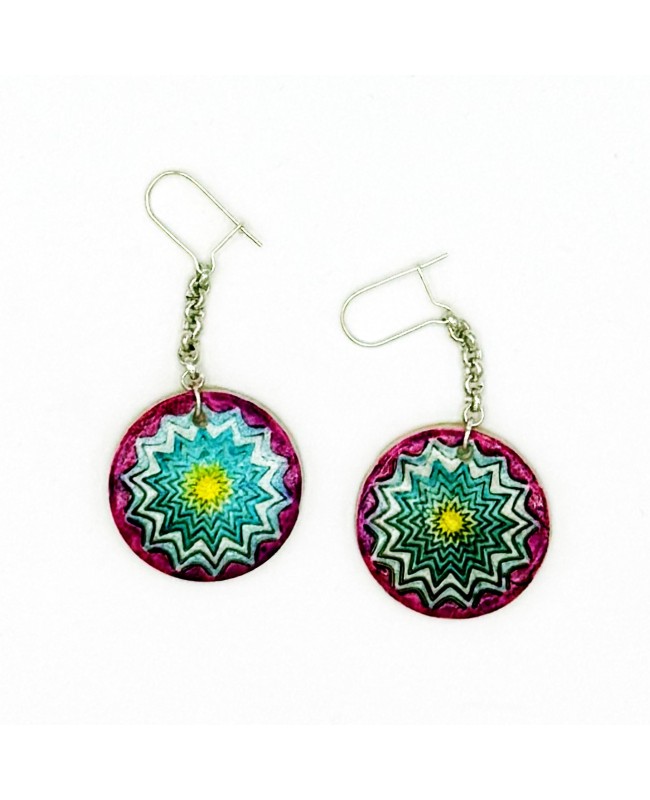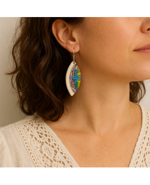 Réalisées à la main dans noter atelier, elles sont montées sur une chaîne en métal argenté. Avec leurs 6 cm de longueur, elles se balancent avec nonchalance et attirent les regards. Un bijou artisanal unique, coloré et plein de peps — parfait pour révéler votre côté zen et créatif !