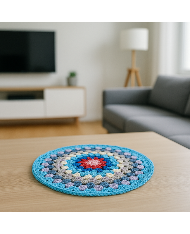 Ce napperon décoratif rond est entièrement réalisé à la main au crochet, avec un fil de coton de qualité supérieure. Ses motifs délicats et ses nuances apaisantes de bleu en font un accessoire idéal pour ajouter douceur et élégance à votre intérieur. Avec son diamètre de 25 cm, il peut être utilisé comme centre de table, dessous de vase ou élément décoratif sur un buffet, une table d’appoint ou une commode.