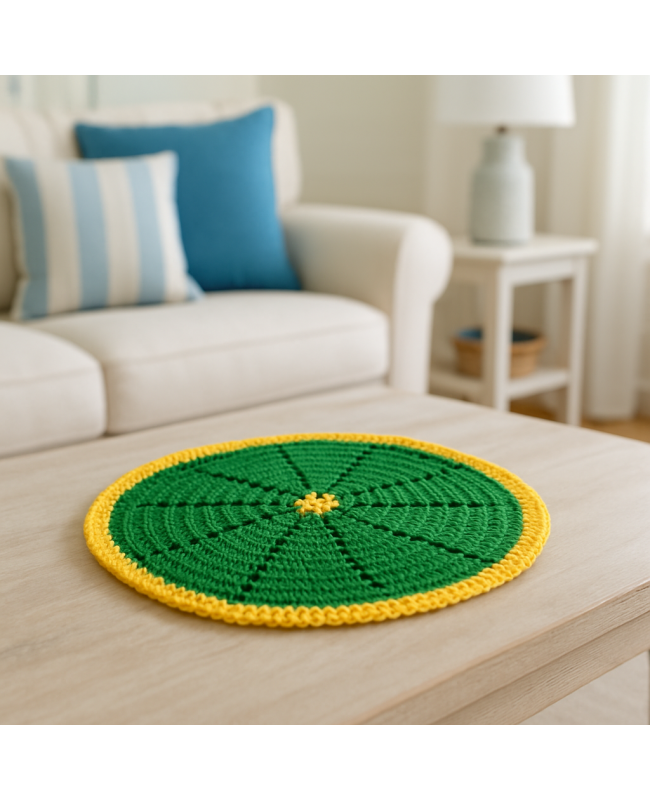 Le motif ajouré, inspiré des formes naturelles d’une tranche d’agrume, met en avant le savoir-faire artisanal du crochet. Utilisé en centre de table, dessous de vase ou pour mettre en valeur un objet déco, ce napperon apporte une note colorée tout en protégeant délicatement vos surfaces.