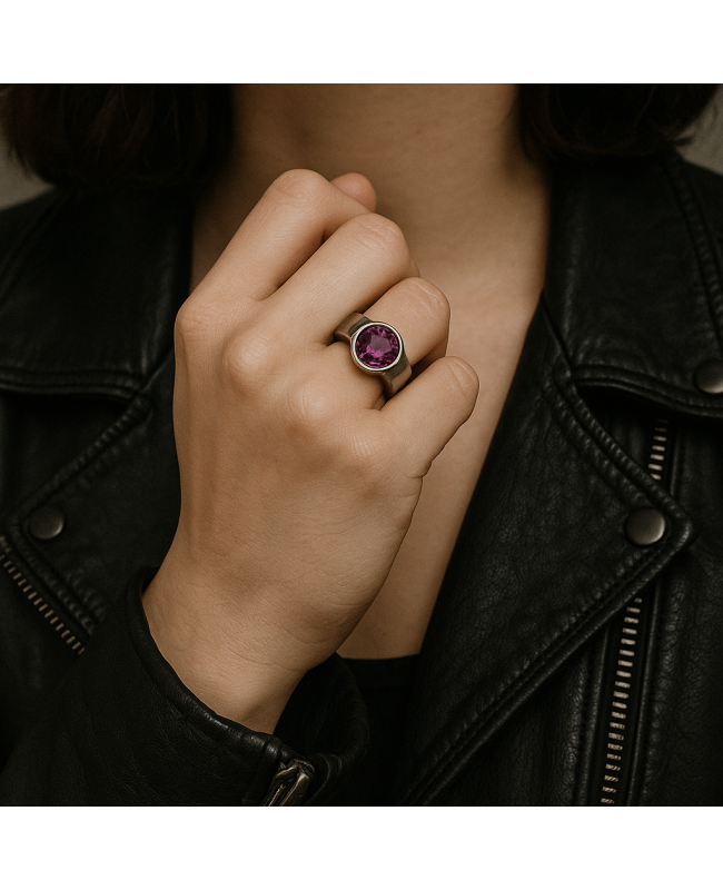 Afin de conserver l’éclat de votre bague en acier inoxydable et de son cristal violet le plus longtemps possible, quelques réflexes simples :