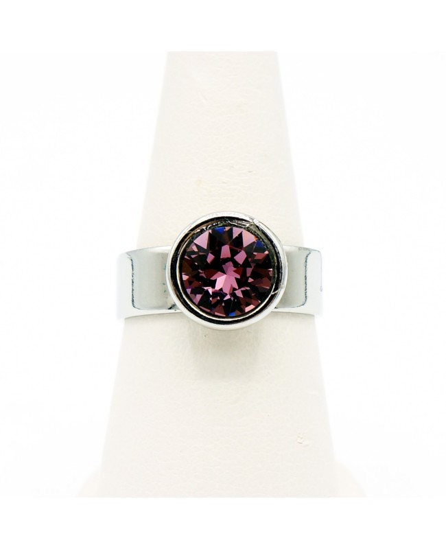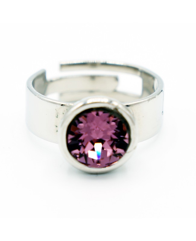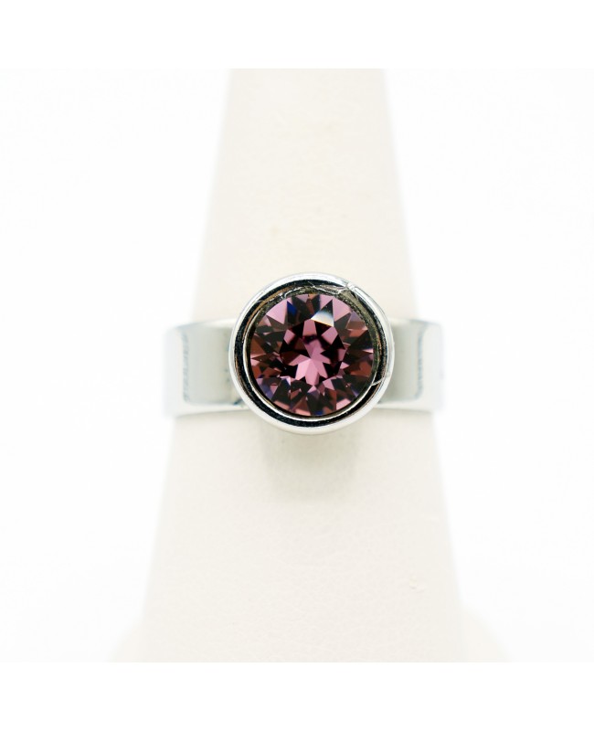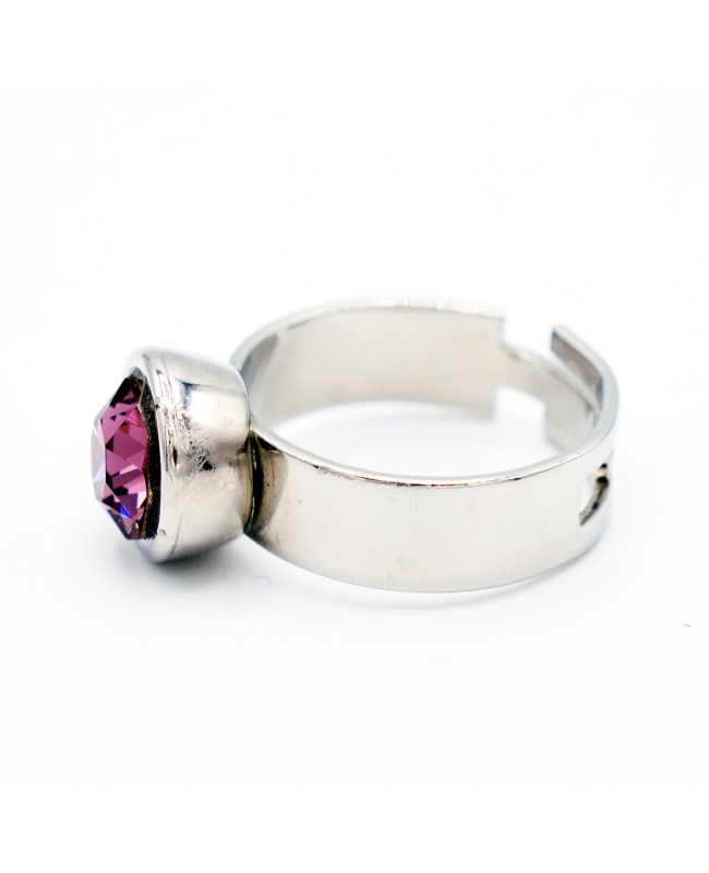 Une bague fantaisie pour femme élégante et moderne, en acier inoxydable, ornée d’un cristal Autrichien violet aux reflets rose / améthyste. Discrète mais lumineuse, elle apporte une touche de couleur à vos tenues, du jean baskets à la petite robe noire.