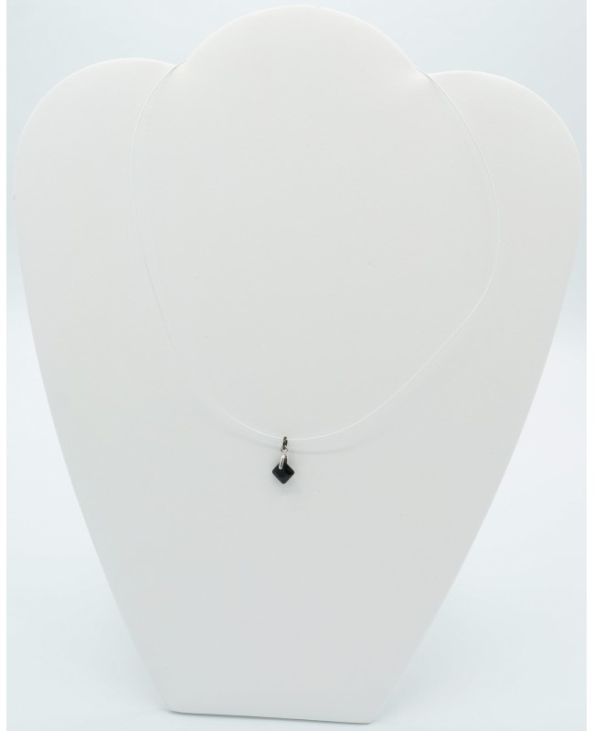 Ce collier ras-le-cou met en valeur un mini pendentif noir facetté en cristal d’Autriche. Grâce à ses multiples facettes, le cristal accroche la lumière et révèle de jolis reflets profonds, tout en restant sobre et élégant.