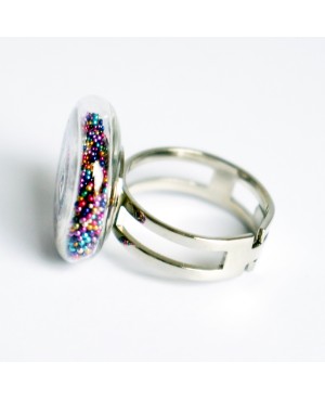 Bague en microbilles multicolores - dôme plat